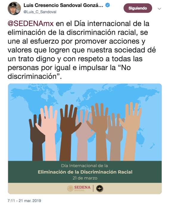 Desde el pasado 18 de marzo, si tienes la piel tintada permanentemente, ya puedes enlistarte en las filas de la Secretaría de la Defensa Nacional (Sedena) sentenció en un comunicado el General Crescensio Sandoval González, titular de la dependencia.